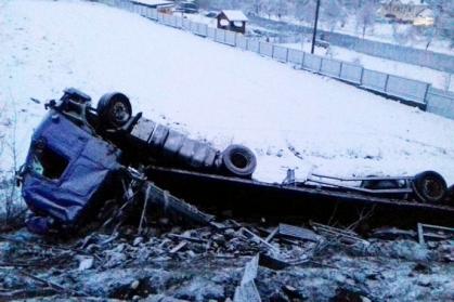 Сьогодні вночі на автодорозі Київ-Чоп неподалік села Голубине Свалявського району сталася ДТП: з дороги злетіла в кювет і перекинулася завантажена пивом фура марки «Vоlvо».