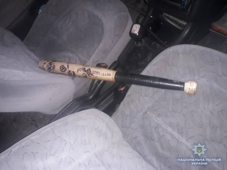 В ході перевірки документів 22- річного водія, поліція помітила на задньому пасажирському сидінні бейсбольну биту, довжиною близько 50 см.