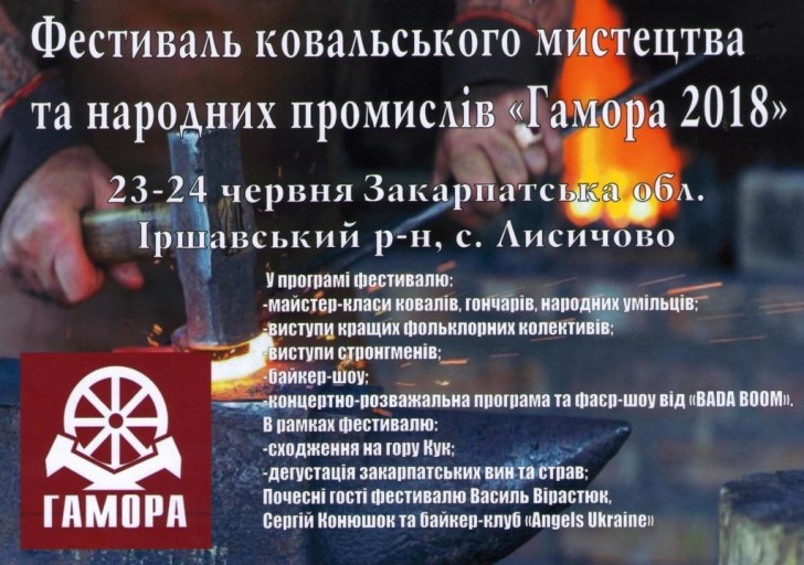 Традиційний фестиваль ковалів та народних промислів «Гамора 2018» скликає любителів обробки металу 23-24 червня у село Лисичево на Іршавщині.