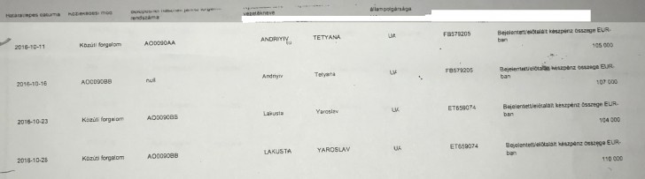 Вивіз коштів здійснювався у чотири заходи: 11 жовтня 2016 року – 105 тисяч євро, 16 жовтня 2016 – 107 тисяч євро року, 23 жовтня 2016року-104 тисяч євро, 28 жовтня 2016 року 110 тисяч євро.