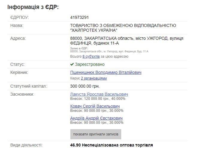 Розуміючи, що є депутатом облради Андрій Андріїв здійснював протиправні дії, декларуючи кошти на угорській стороні на піджаків у ролі яких виступали його дочка Тетяна Андріїв та близький родич Ярослав Лакуста, який разом з Андріївим є засновником ТОВ “ХАЙПРОТЕК УКРАЇНА”.