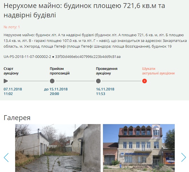 Нерухоме майно складалося: будинок літ. А та надвірні будівлі (будинок літ. А площею 721, 6 кв. м, літ. Б площею 13,4 кв. м, літ. В – гаражі площею 107,0 кв. м та літ. Г – навіс), що знаходиться за адресою: Закарпатська область, м. Ужгород, площа Петефі (площа Петефі Шандора; площа Возз’єднання), будинок 19.