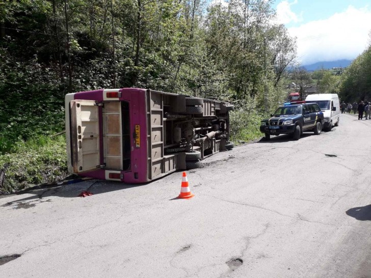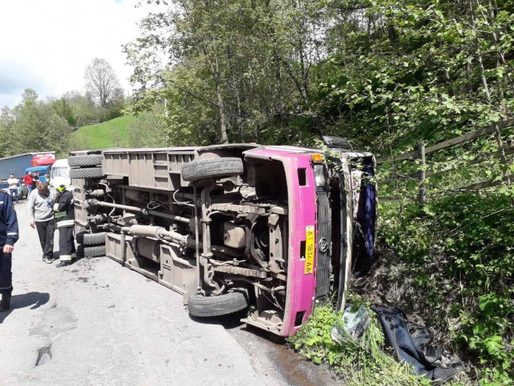23 травня о 14:28 до рятувальників надійшло повідомлення, що на автошляху Мукачево-Рогатин в районі с. Лазещина Рахівського району перекинувся автобус, що виконував рейс “Івано-Франківськ – Мукачево.