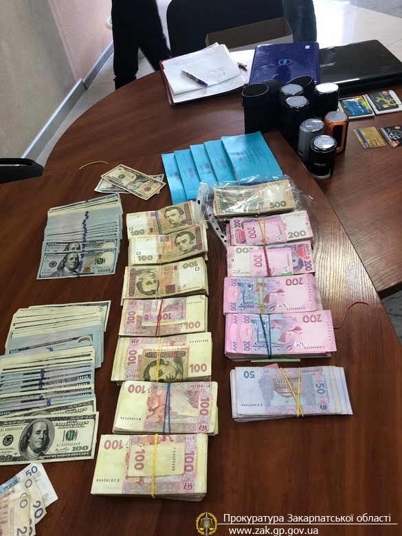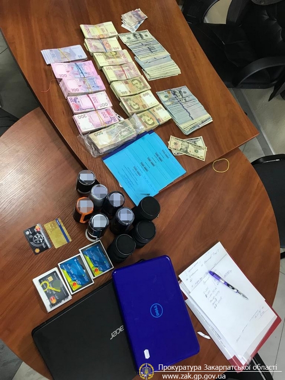 За результатами шести санкціонованих обшуків, які проводились на території м. Ужгорода, Мукачівського та Тячівського районів вилучено значні суми готівки у національній та іноземній валютах, печатки, електронні носії інформації, первинні фінансово-господарські документи, тощо.