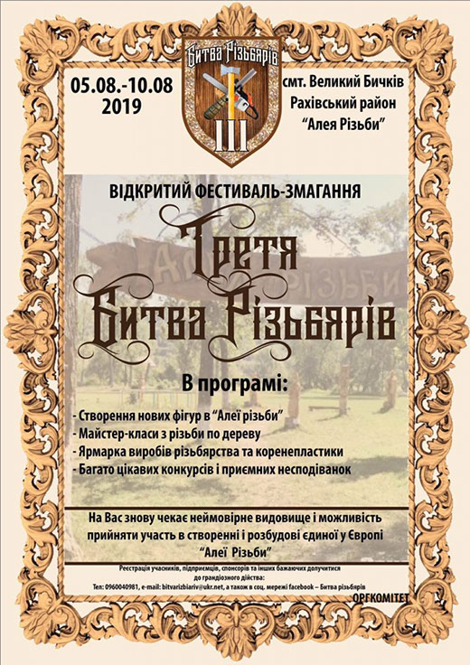 Реєстрація учасників, підприємців, спонсорів та інших бажаючих долучитися до грандіозного дійства за тел. 0960040981. Усі подробиці на офіційній сторінці “Битви різьбярів” у мережі Фейсбук.