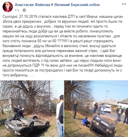 Як ми вже повідомляли, 27 жовтня, у селі Мирча (Великоберезнянський район) трапилась жахлива ДТП – водій на швидкості не ворався з управлінням і вилетівши на узбіччя збив двох пішоходів.