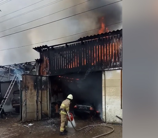 Відео приборкання вогняної стихії виклав у соцмережі Yura Havran. Як повідомляють місцеві жителі, горить автосервіс.