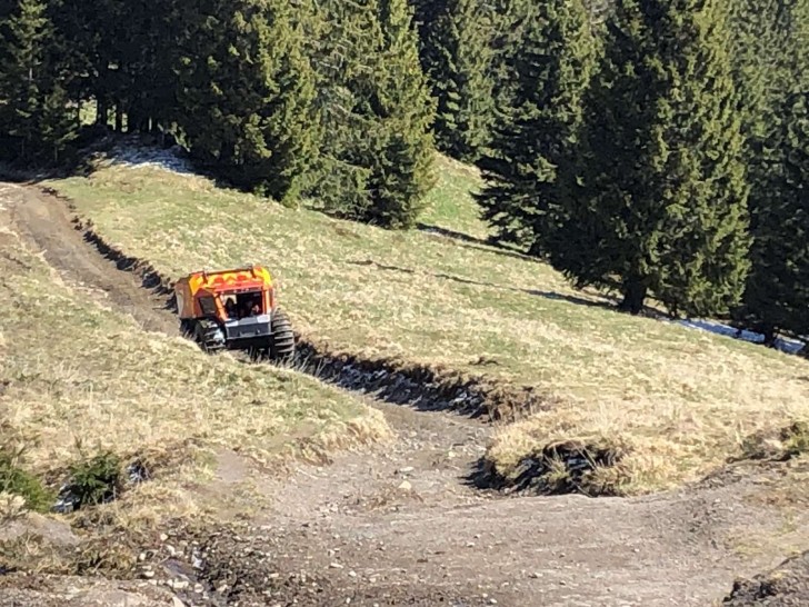 Так, вчора, приміром, тестували можливості снігоболотохода «Богун» діяти в умовах болотистої місцевості та високогір’я. Техніка в рятувальників нова, тож тест-драйв проходила лише по снігу взимку. І зараз, коли він розтанув, рятувальники вирішили перевірити, як цей могутній красень-всюдихід буде долати бездоріжжя й водні перешкоди високогір’я. За допомогою централізованої системи контролю тиску, колеса цього унікального транспортного засобу обирають варіант найкращого прилаштування до конкретних умов місцевості, а особливий протектор шин дозволяє збільшити зціплення з поверхнею.