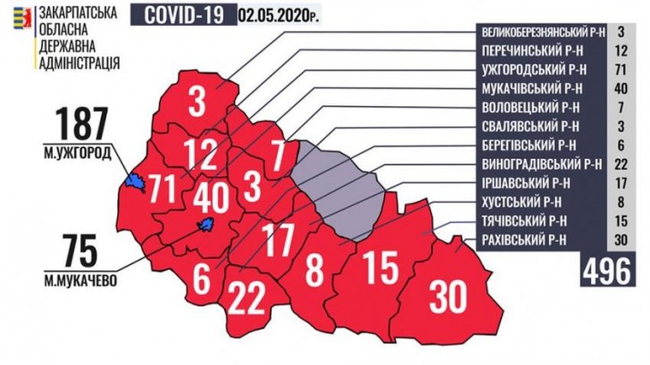 Ситуація щодо COVID-19 на Закарпатті станом на 9 годину 2 травня