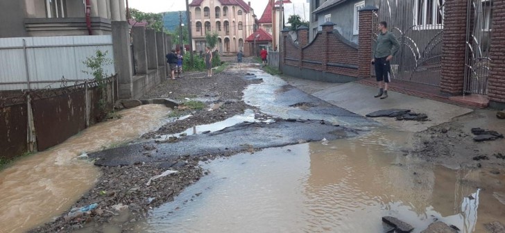 Через сильну зливу та захаращені придорожні канави у с.Середнє Водяне Рахівського району підтоплено 2 вулиці: Гоголя і Хмельницького.