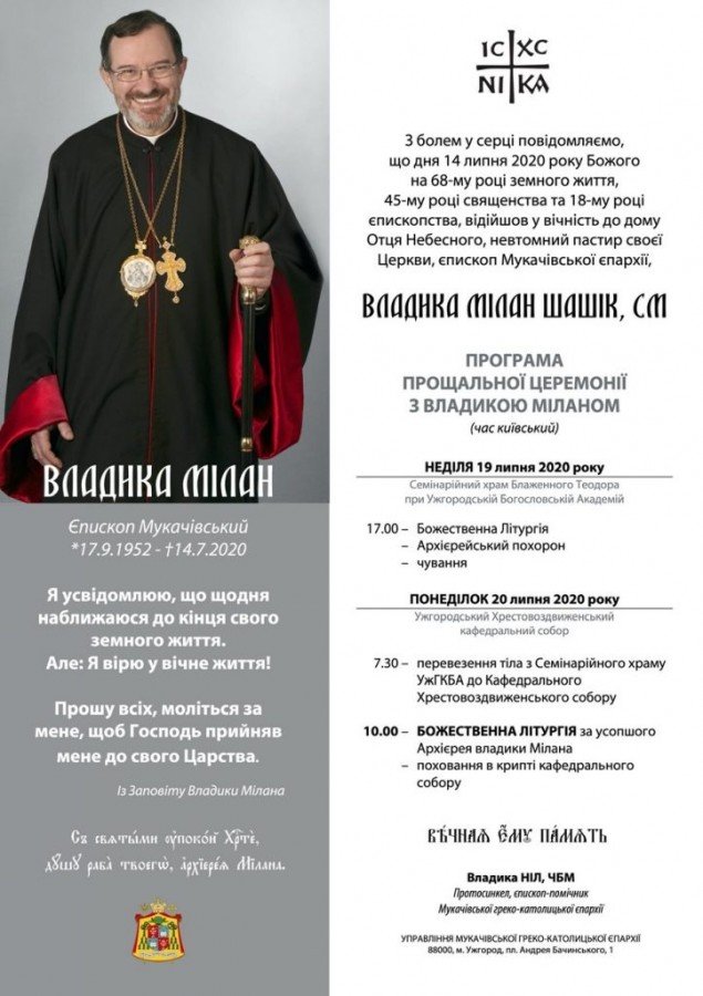 Програма прощальної церемонії з Владикою Міланом АНОНСИ СУСПІЛЬСТВО 2020-07-16 clipnews Коментарі Вимкнено до Програма прощальної церемонії з Владикою Міланом Пряму трансляцію Божественної Літургії за усопшим Архіреєреєм Міланом Шашіком дивіться на каналі “М-студіо” у понеділок, 20 липня, з 10.00 години.