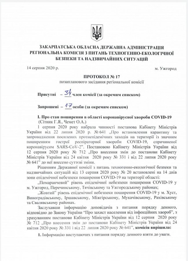 17 серпня розпочне діяти нове епідемічне зонування. Райони Закарпаття потрапили у три зони: зелену, жовту та помаранчеву.