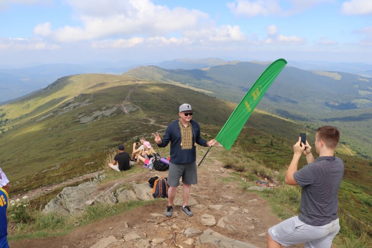 Народні депутати України від Політичної партії «Слуга народу» Михайло Лаба, Ігор Кривошеєв та голова Закарпатської ОДА Олексій Петров підняли синьо-жовтий стяг на закарпатській вершині Пікуй.