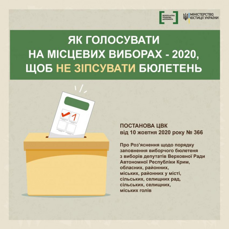 Зовсім скоро, уже цієї неділі, в Україні відбудуться місцеві вибори, на яких обиратимуть депутатів сільських, селищних і міських рад та сільських, селищних і міських голів. Про те, як заповнювати виборчий бюлетень, Центральна виборча комісія затвердила роз’яснення, яке розмістила на своїй офіційній сторінці ().