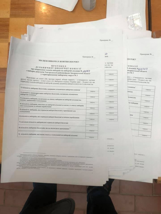 В Ужгороді на 5 окрузі спостерігачами було виявлено майже два десятки пустих протоколів, які вже підписані головою, заступником та секретарем комісії, а також окремими членами ДВК.
