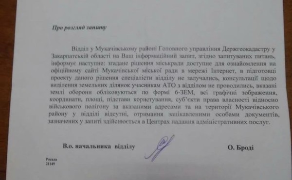 Влада Мукачева пропіарилася на землі для атовців за рахунок власності Міноборони