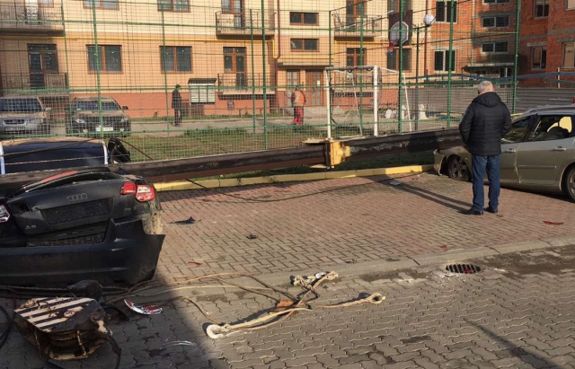 На будівництві в Ужгороді впала стріла крану і потрощила дві припарковані автівки