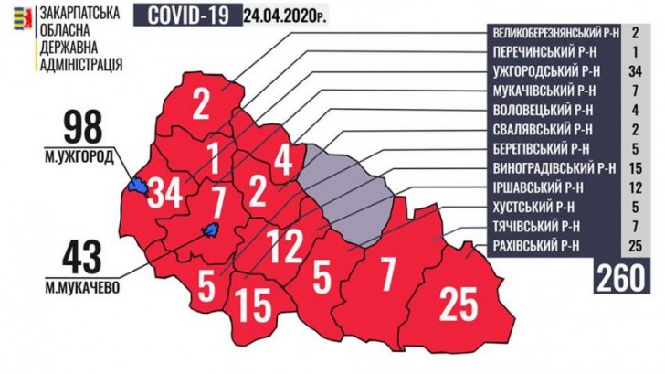 Ситуація щодо COVID-19 на Закарпатті станом на 9 годину 24 квітня