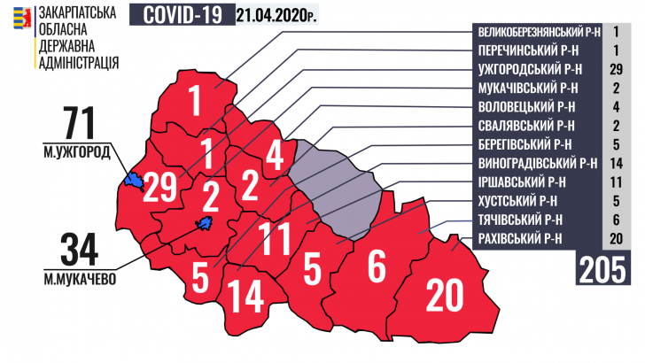 Ситуація щодо COVID-19 на Закарпатті станом на 9 годину 21 квітня