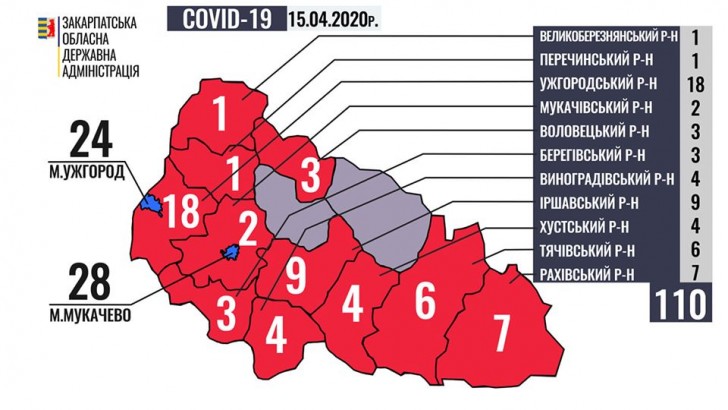 Ситуація з COVID-19 у Закарпатській області станом на ранок 15 квітня