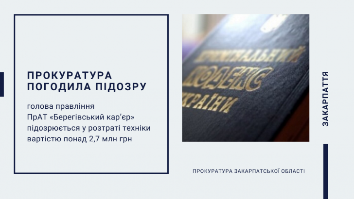 Прокуратура погодила підозру голові правління ПрАТ «Берегівський кар’єр» у розтраті техніки вартістю понад 2,7 млн грн