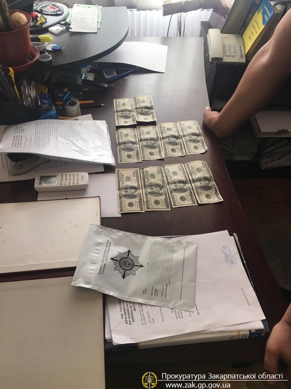 На Закарпатті викрито заступника керівника Перечинського відділення поліції при отриманні 3 000 дол США і 5 000 грн хабара (відео)