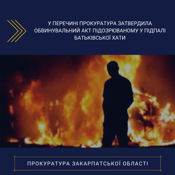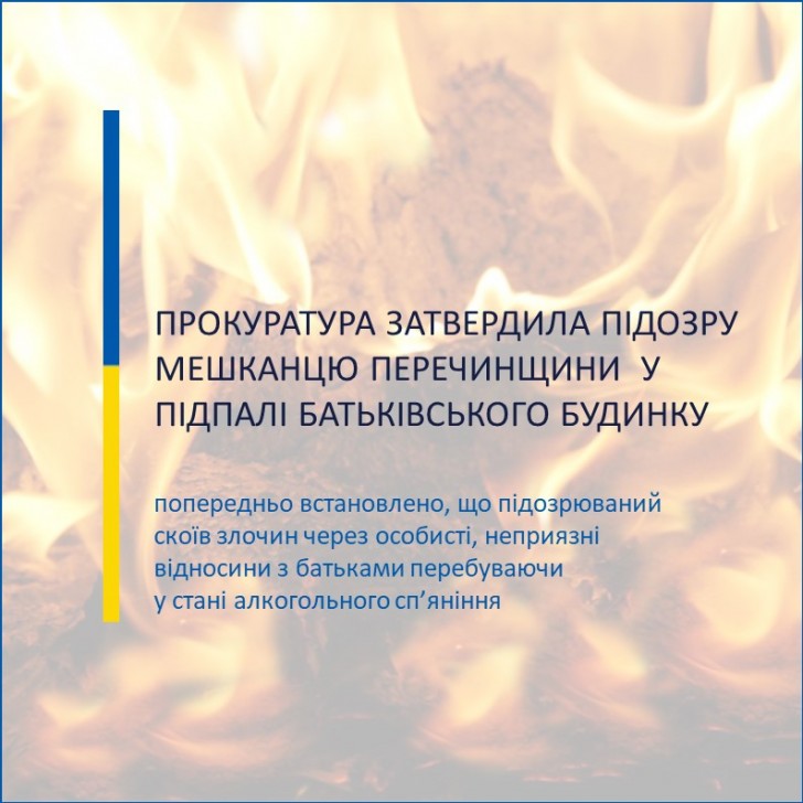 На Перечинщині прокуратура затвердила підозру місцевому мешканцю у підпалі батьківського будинку