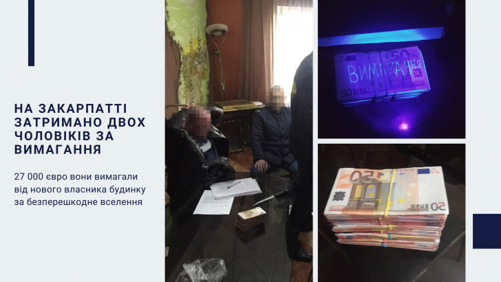 На Закарпатті затримано 2 чоловіків, які вимагали 27 тисяч євро від нового власника будинку за безперешкодне вселення (ФОТО)