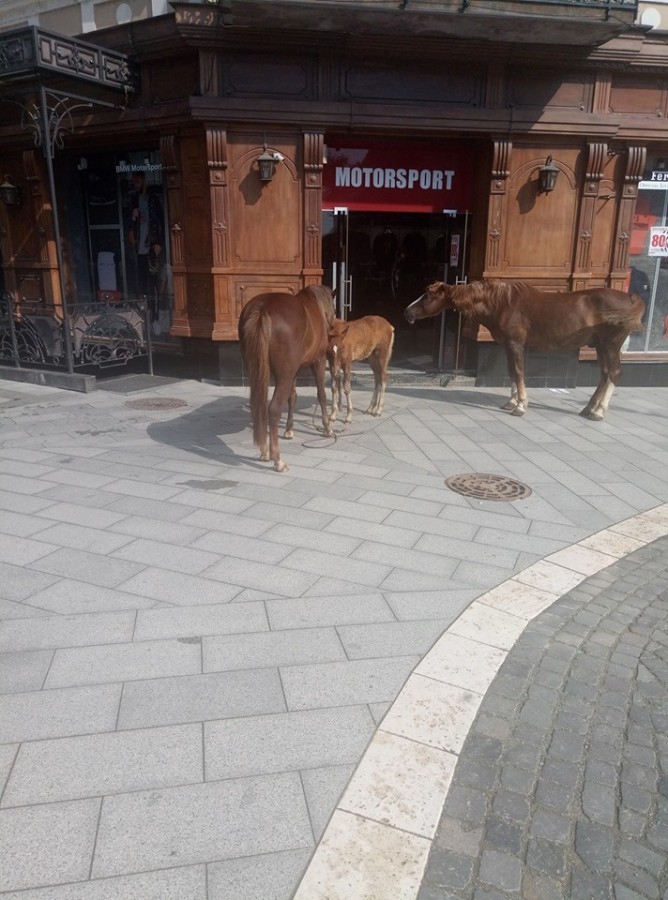 Зранку середи ужгородці почали публікувати у мережі Facebook фото трьох коней, які вільно прогулюються вулицями обласного центру. Тварин бачили у різних куточках міста – від околиць і до центру. Не відомо чиї це коні, чому вони опинились на вулиці. Проте вони ледь не спровокували кілька ДТП. Тож будьте обачні!…